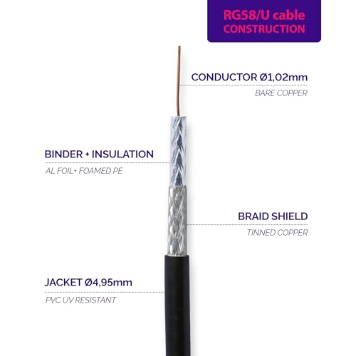 ✅【 Conduttore in rame massiccio 】 Il cavo coassiale per antenna con conduttore in rame da 1,02 mm e schermo intrecciato in rame stagnato garantisce una trasmissione dati di prima classe con un'attenuazione minima.