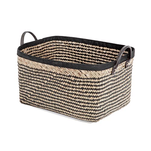 Rangement & Cie RAN6539 - Cestino Padang in giunco Intrecciato, Misura Grande, Marrone/Nero