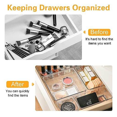 Facile da usare: il materiale trasparente consente di trovare rapidamente gli articoli e offre spazio sufficiente per riporlo. Il sistema di organizzazione dei cassetti da cucina può essere utilizzato ovunque nel tavolo da toeletta, bagno, cucina, armadio o banco da lavoro o cassetto, può soddisfare le vostre esigenze quotidiane.