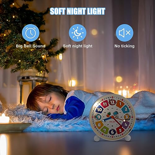RANJIMA Sveglia Digitale per Bambini, Sveglia per Bambini, Sveglia Silenziosa Senza Ticchettio, Sveglie Analogiche per Bambini, Luce Notturna per Bambini,Camera da Letto, Regalo per la Scuola (Bianco)