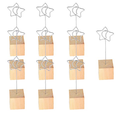 RANNYY Clip per Appunti con portafoto, Clip per Appunti da 10 Pezzi Portafoto per portafoto con Immagine del Supporto in Metallo Base in Legno massello Craft Star