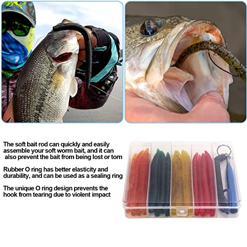 RANNYY 65 pz/Scatola Esca Morbida Verme, Kit Esche da Pesca con O-Ring di Gomma Esche Artificiali Morbide Esche per Bass Fishing