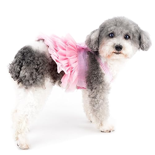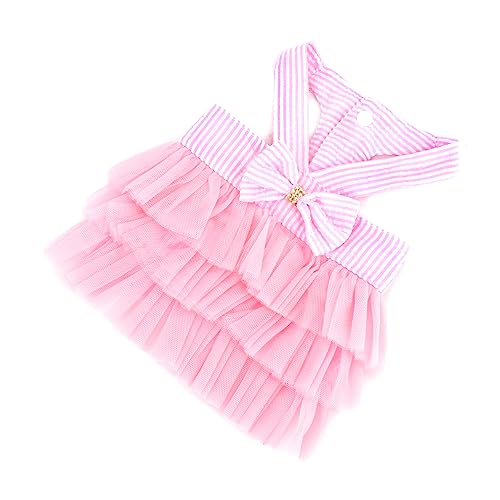 Ranphy Cane Vestito da Principessa per Cani di Piccola Taglia Ragazze Vestito a Righe Femmina con Papillon Cucciolo Carino Primavera Estate Gatto Tutu Gonna Abbigliamento Yorkie Chihuahua Rosa S