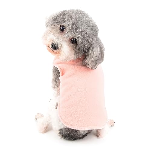 Ranphy Gilet per cani di piccola taglia per ragazze e ragazzi, maglione a tinta unita con anello a D, in morbido pile, caldo abbigliamento invernale autunnale per cuccioli di gatto, rosa, L