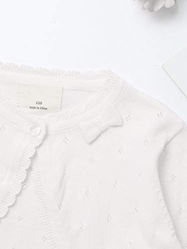 Ranrann Bolero Bambina Cerimonia Manica Lunga con Bowknot Cardigan Lavorato a Maglia in Cotone Coprispalle Mantello Maglioni con Bottone per Vestito Abito da Sposa Bianco 7-8 Anni