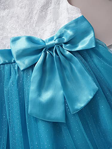 Ranrann Vestito da Bambina Abito da Battesimo da Principessa Bimba Vestitino da Cerimonia Nuziale Neonata Abiti Tulle Senza Maniche Abiti da Sposa Matrimonio Moon Blue 18-24 Mesi
