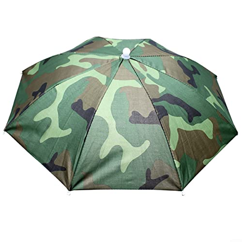 RANRAO Cappello da ombrello portatile, pieghevole per esterni, cappello da pesca, ombrello da pesca, testa arcobaleno, ideale per pesca, escursionismo e attività all'aperto, Mimetico