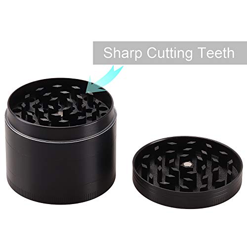 Rantecks Herb Grinder 2.1" Mulino per spezie in smerigliatrice per spezie in Alluminio da 4" da 4 Pezzi con Raschietto per polline Perfetto per i buongustai Che desiderano l'eccellenza culinaria-Nero