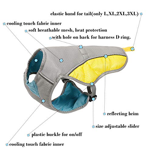 Prestazioni: materiale morbido e leggero per tutti i movimenti della gamma, il giubbotto di raffreddamento per cani aiuta anche la protezione dai raggi UV, previene la forte luce solare dalla calda estate, protegge il cane dalle scottature, fa sentire il cane come nella fresca palude