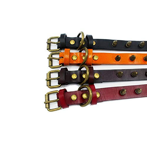 Rantow Collare per Cane in Pelle con Borchie - Collare Regolabile in Cuoio con Cucitura a spuntoni per Animali Domestici di Taglia Piccola (M, Marrone Chiaro)