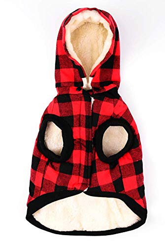 Rantow Giacca per Cani Antivento Cappotto Invernale Cappuccio Rimovibile Giacca per Cani Tempo Freddo Plaid Rosso/Plaid Blu Cucciolo con Cappuccio Abbigliamento Maglione Abiti (XL, Plaid Rosso)