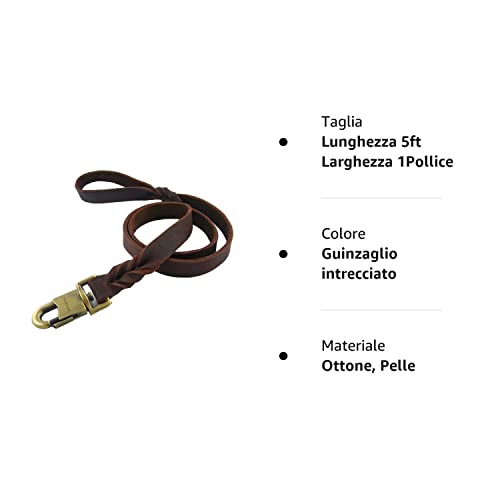 Rantow Pelle Durevole Pet Walking Corda per i Cani di Medie o Grandi Cani Larghi 1 Pollice e da 3 a 5 ft Lunghi Bella Intrecciato a Mano Marrone Cane in Pelle Guinzaglio (5 FT)