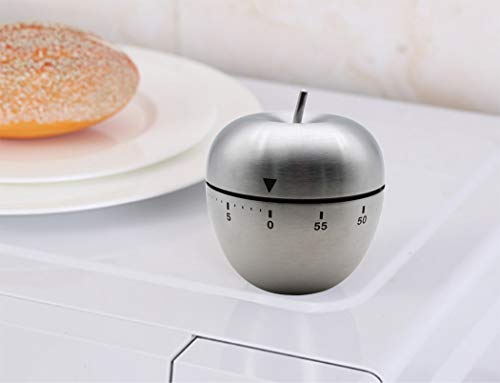 Ranvi Timer da Cucina, Timer Rotante Meccanico in Acciaio Inox a Forma di Mela, Cottura in 60 Minuti