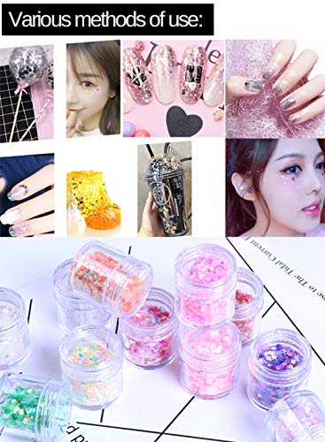 Set di paillettes per unghie con 12 lattine, ogni modello è confezionato in una lattina e ha un buon sigillo per evitare fuoriuscite. 6 modalità: forma irregolare, a forma di cuore, triangolo, diamante, stella, cerchio, ecc. Mostrano diversi colori brillanti se visti da luci e angolazioni diverse. Rendi le tue unghie incredibili.