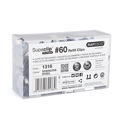 Rapesco 1316 Supaclip 60 Mollette/Clips di Ricarica in Acciaio Inossidabile, Confezione da 250