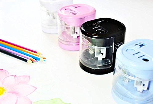Rapesco 1449 PS12-USB Temperamatite Elettrico a Due Fori alimentato a pila o carica USB, Nero