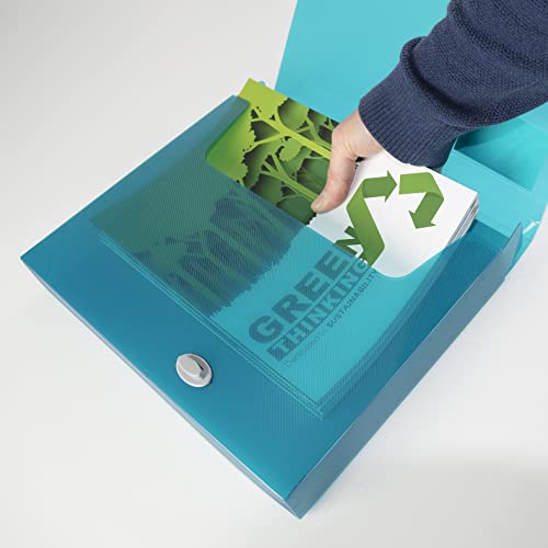 Confezione da 5 scatole / cartelle porta progetti rigide A4 in colori trasparenti assortiti per una facile archiviazione coordinata per colori: 1 x blu, 1 x viola, 1 x verde acqua, 1 x turchese, 1 x rosa