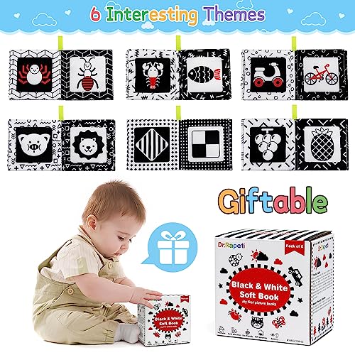 Dr.Rapeti Set di 6 Stoffa per Bambini ad Alto contrasto, Libri di Stoffa per Bambini in Bianco e Nero, Libro di Stoffa Sensoriale ad Alto contrasto, Educativi Sensoriale in Tessuto Libro(inglese)