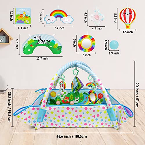 Tappetino da gioco per bambini: Il tappetino da gioco per bambini Dr.Rapeti include 1 tappetino oversize per il tempo di pancia del pianeta animale (47x40 pollici), 1 cuscino, 1 giocattolo di plastica, 1 libro di stoffa morbida, 1 specchio morbido, 2 giocattoli morbidi e cigolanti e 15 palline oceaniche. I giocattoli sensoriali possono stimolare la vista, l'udito e il tatto del bambino, la cognizione e la coordinazione corporea, soddisfacendo appieno le sue esigenze di crescita.