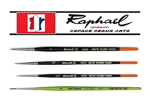 Raphael: Kolinsky Red Sable brush: series 8404 .Set 3 pezzi, size 5/0. 2/0. 1 (Raffaello Francia) Espace Beaux Arts