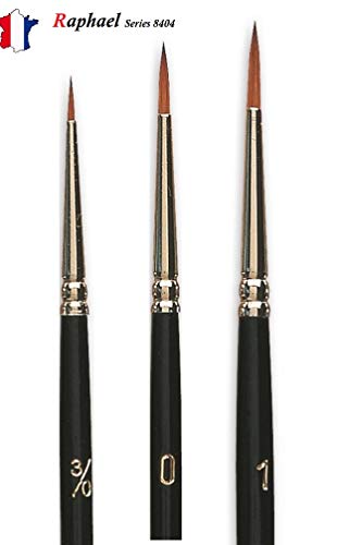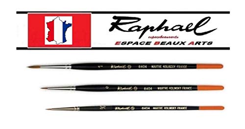 Raphael: Kolinsky Red Sable Brush: Series 8404 .Set 3 Pezzi, Size 3/0. 0. 1 (Raffaello Francia) Espace Beaux Arts