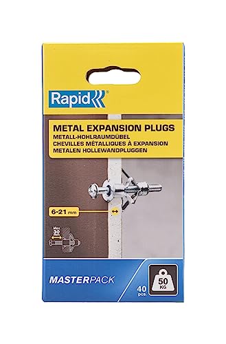 Rapid Confezione da 40 Tasselli ad Espansione in Metallo per Pareti Cave in Cartongesso e Truciolari dallo Spessore di 6 - 21 mm, Supportano fino ad un Carico di 50 Kg