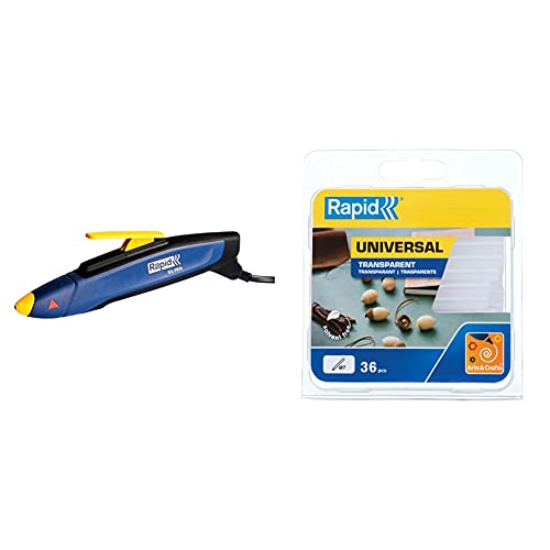 Rapid EG Pen Incollatrice a caldo per stick da 7 mm. Incollatrice con 36 stick di colla a caldo Trasparente universale per lavori manuali, decorazioni e piccole riparazioni