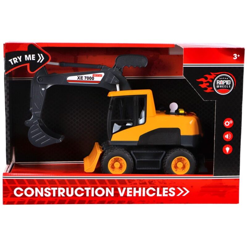 Escavatore Rapid Wheels con effetti luminosi e sonori. Adatto a bambini dai 3 anni.