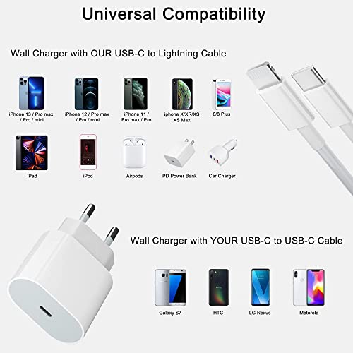 USB C Rapido Caricatore Per iPhone【Certificato Apple MFi】Alimentatore USB‑C da 20W Caricabatterie da parete Cavo 3M USB C Lightning Adattatore di Ricarica Rapida per iPhone 13 12 11 SE XS XR X 8 iPad...