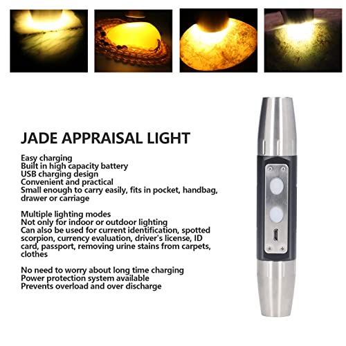 Design multifunzionale: questa luce di identificazione della giada non può essere utilizzata come torcia elettrica, ma anche come luce del rivelatore. Sia all'interno che all'esterno, le attività di identificazione possono essere completate facilmente.
