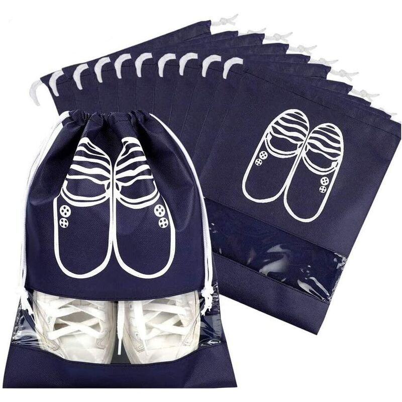 Case per scarpiere familiari o offshore, camera da letto e deposito scarpe per la pulizia. Fornitore: 10 pezzi 36 * 26,5 cm (blu scuro). Facile da aprire e stringere. Fasci di alta qualità, impermeabili, resistenti, antipolvere, semplici, leggeri, traspiranti, ragionevolmente organizzati e protetti. Comoda finestra di visualizzazione trasparente: La finestra trasparente sulla tasca consente di identificare le scarpe senza aprire ogni borsa. Pulito e ordinato: Pratiche borse per scarpe Separare le scarpe con vestiti e altri oggetti, possono essere riposte in scarpiere, valigie, trolley e zaini e