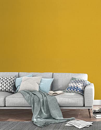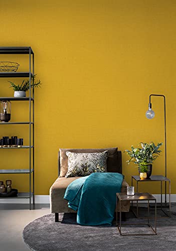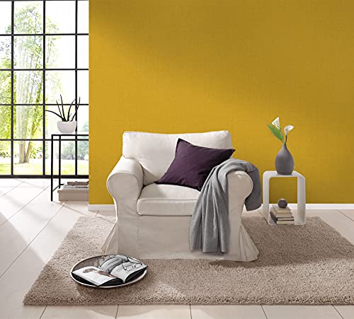 Rasch Carta da parati Amazing 531442 in tessuto non tessuto, tinta unita, colore giallo ocra, con struttura leggera in tessuto, 10,05 m x 53 cm (lunghezza x larghezza)