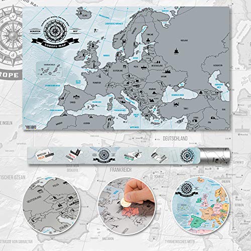 Raschia Via la Mappa del Mondo Europa - XXL Mappa del Mondo da grattare Via 82 x 45 cm - Raschia Via la Mappa del Mondo Deluxe Murales
