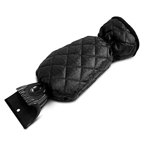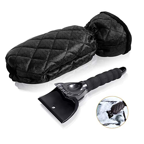 Raschietto per ghiaccio - Raschietto per ghiaccio con guanto impermeabile foderato in pile spesso Raschietto per ghiaccio con impugnatura antiscivolo per parabrezza e finestrino (nero)