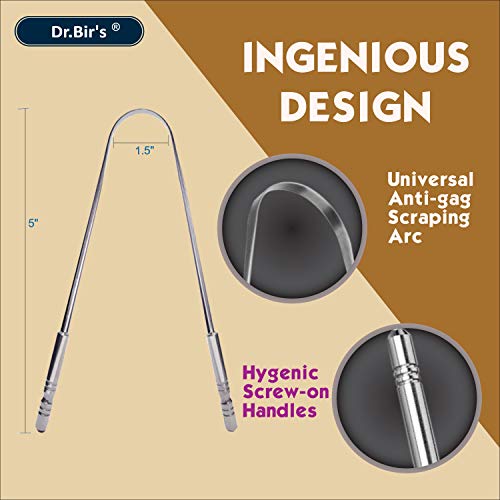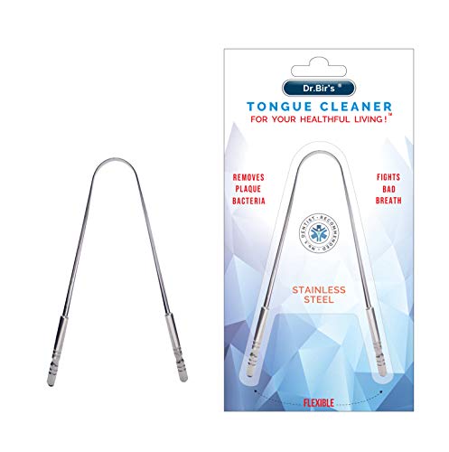 Raschietto per lingua in acciaio inox di Dr Bir's | Combatte l'alito cattivo | rimuove placca e batteri | Igienicamente imballato