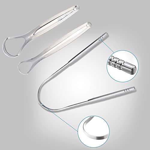 Contenuto della confezione: riceverete 3 raschietti per lingua in acciaio inox, 1 raschietti a forma di U più grandi e 2 raschietti aggiuntivi, uno grande e uno piccolo. Utilizzare il raschietto più grande per pulire tutta la lingua e il raschietto più piccolo per pulire alcuni punti difficili.