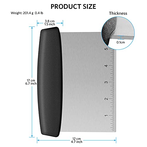 Raschietto per pasta, tagliapasta con manico e scala di misurazione, raschietto da banco con lama in acciaio inossidabile per uso alimentare, ottimo come raschietto per pasta, 7 pollici, nero