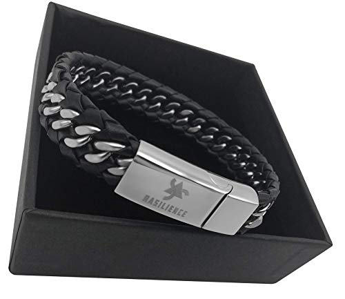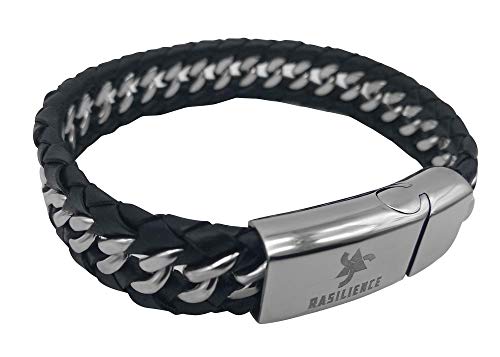 Rasilience Bracciale Uomo Cuoio nero e treccia di Acciaio fatta a mano con chiusura magnetica stile moderno elegante