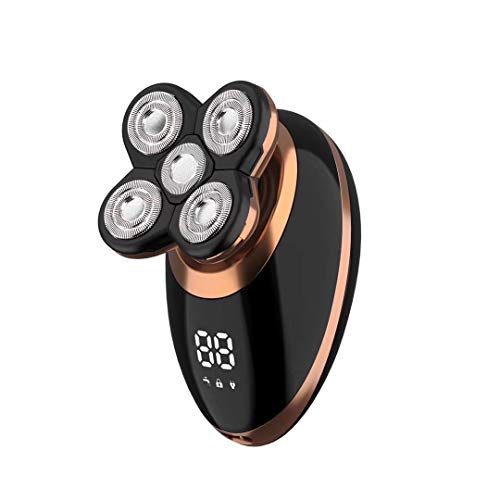 Rasoi elettrici per uomini, 5 in 1 USB impermeabile 4D Ricaricabile Rasoio secco bagnato Rotary Rasoio Barba Grooming Kit per Uomini, Display LED Testa Calva Rasoio Elettrico Trimmer per Uomini (Oro)