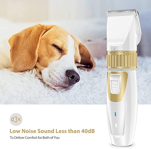 Silenzioso e silenzioso: i rumori forti possono rendere i nostri animali domestici ansiosi, che possono danneggiare il loro benessere. Tosatrice per cani progettata con tecnologia silenziosa e silenziosa. Molto silenzioso da usare, ci sono solo 40 dB di rumore di funzionamento, nessun fastidio o paura per il vostro amato animale domestico.