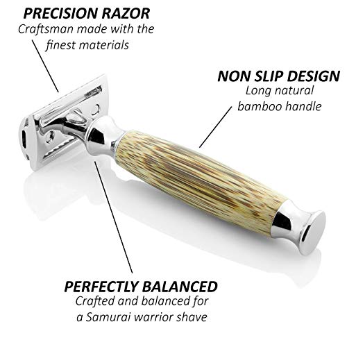 ✅ MATERIALI DELLA QUALITÀ PIÚ ELEVATA: I nostri rasoi a doppia faccia per gli uomini includono un LUNGO manico in bambù e cromo. Rasoi a manico lungo come questo sono diventati difficili da trovare. Converrai che un rasoio a manico lungo è più facile da usare, offrendoti una migliore rasatura. È anche più facile per le persone con mani grandi.