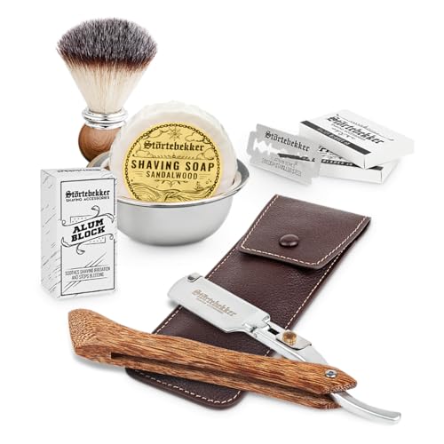 Set rasoio mano libera, custodia in pelle fatta a mano - tra cui pennello da barba, ciotola da barba, sapone da barba, pietra di allume e 100 lame - set da barba per rasatura bagnata di alta qualità