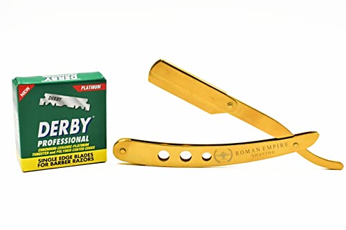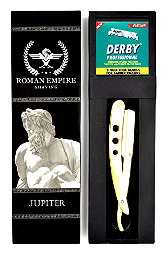 Rasoio a Mano Libera Jupiter di Roman Empire Shaving | Rasoio per Uomo Professionale da Barbiere per Barba, Baffi e Contorni con 100 Lamette Derby Professional