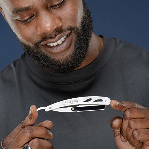 Rasoio a Mano Libera di Sapiens - Rasoio Barba Manuale Uomo con 10 Lamette da Barba Derby (20 Mezze Lame) e Custodia Protettiva - Rasoio da Barbiere Professionale per la Rasatura e la Cura Barba