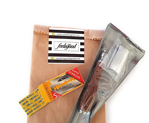 Arriva già in sacchetto REGALO. Assapora il pregevole manico in legno. Prova la rasatura perfetta e precisa con rasoio di sicurezza professionale classico feelsgood di ottima qualità