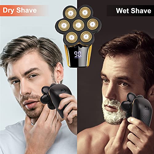 Rasoio Testa Calva 7D 6 in 1 Rasoio Elettrico da Uomo, Rasoio elettrico Capelli Tagliacapelli con USB ricaricabile, Spazzola, LCD, Massaggiatrice, Wet & Dry, Kit da barba multifunzione