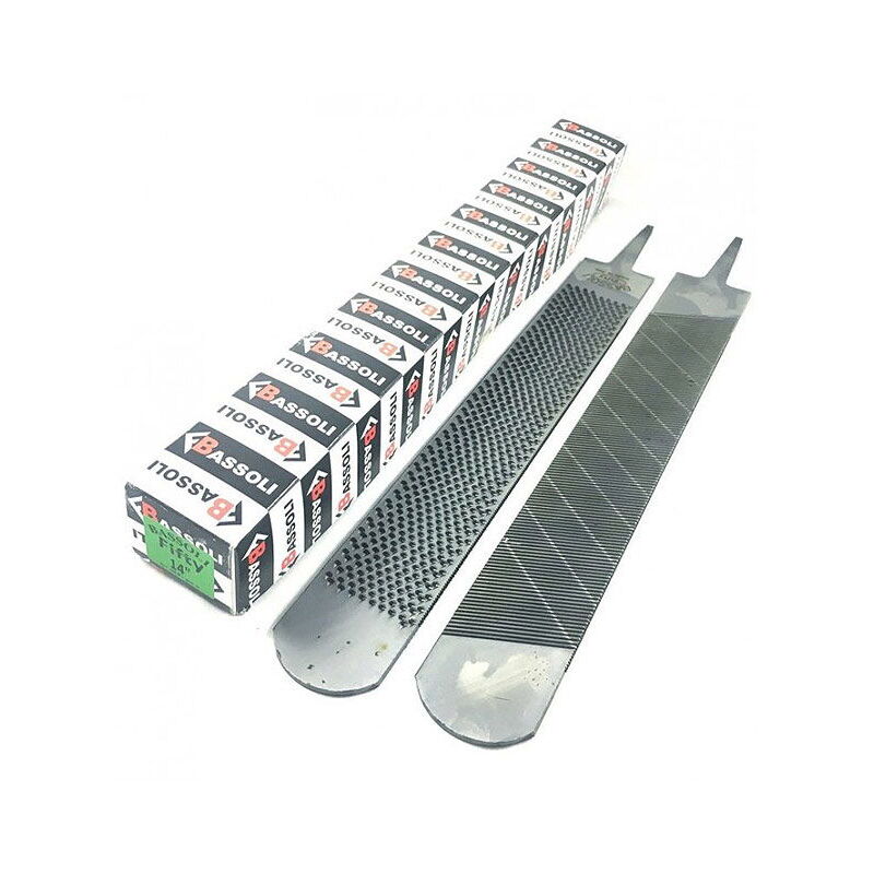 Raspa FIFTY 14 Bassoli un lato lima e un lato raspa adatta per unghie e ferro Marca: Bassoli La Bassoli è una ditta italiana produttrice di lime e raspe dal 1929. Raspa per mascalcia con un lato lima molto aggressivo ed un lato raspa ma con una sezione più larga 50 mm x 4,7 mm di spessore. Il lato lima ha un particolare taglio con rompitruciolo che rende lucida la parete del piede senza asportare eccessivo corno. Studiata per piedi grandi, la sua maneggevolezza la rende adatta a qualsiasi misura del piede. Adatta sia per unghia che per ferro. Tutti gli utensili progettati e realizzati per la mascalcia sono caratterizzati da un'elevata cura e tenacia artigianale. Prodotto in Italia con materiali di alta qualità L'azienda BASSOLI dal 1929 produce lime, raspe e utensili da taglio per vari utilizzi, tra cui la mascalcia. La produzione artigianale sapiente e di elevata qualità, rende questi attrezzi apprezzati da professionisti in Italia e nel resto del mondo.