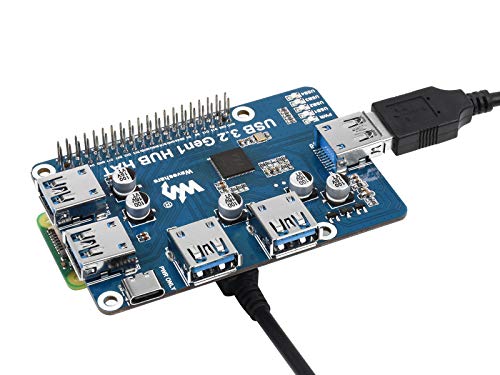 USB 3.2 HUB HAT per Raspberry Pi 4B/3B+/3B/ Zero/Zero W/Zero WH, 4 Porte USB 3.2 Gen1, Driver-Free, Plug&Play, Compatibile con USB 3.0/2.0/1.1, Onboard USB-C 5V CC Porta di alimentazione