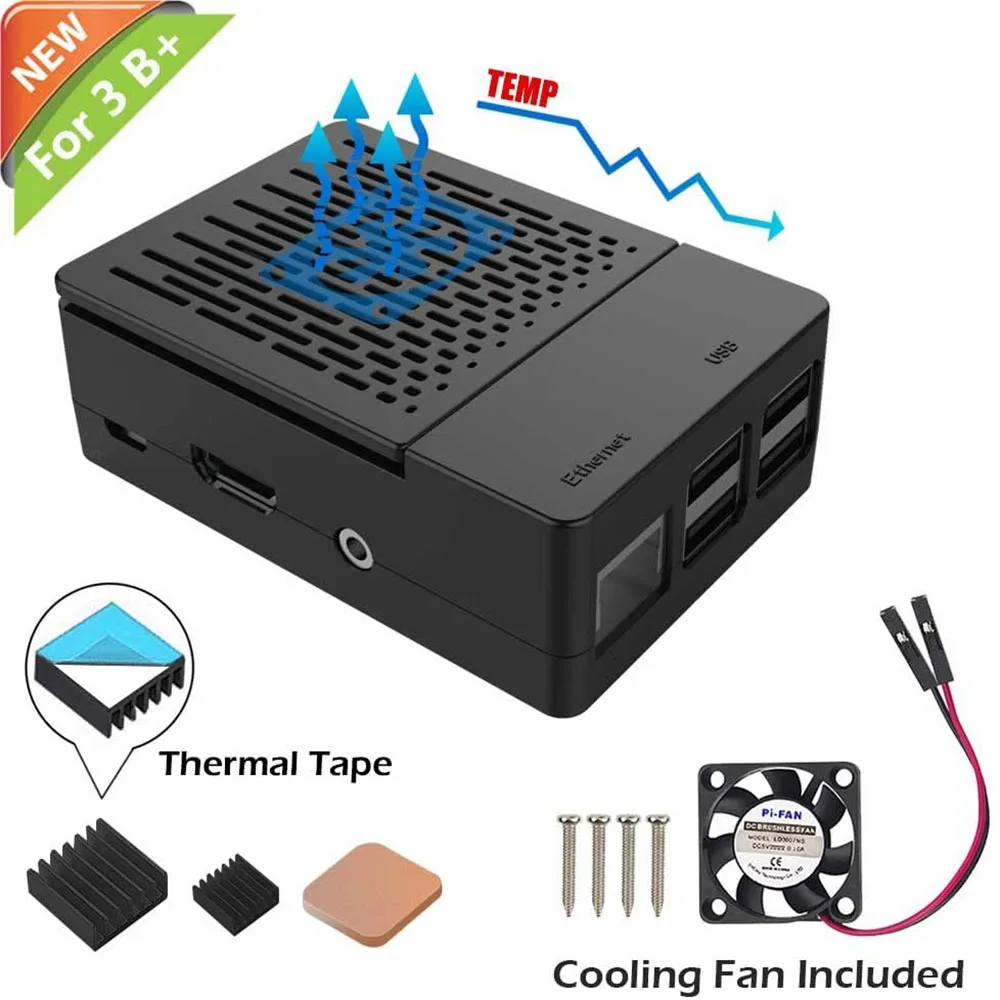 Raspberry Pi 3 B Fan ABS Case with Heatsink Cooling Fan Simple Removable Top Cover for Pi 3 B, Pi 3 Model B, Pi 2 Model B