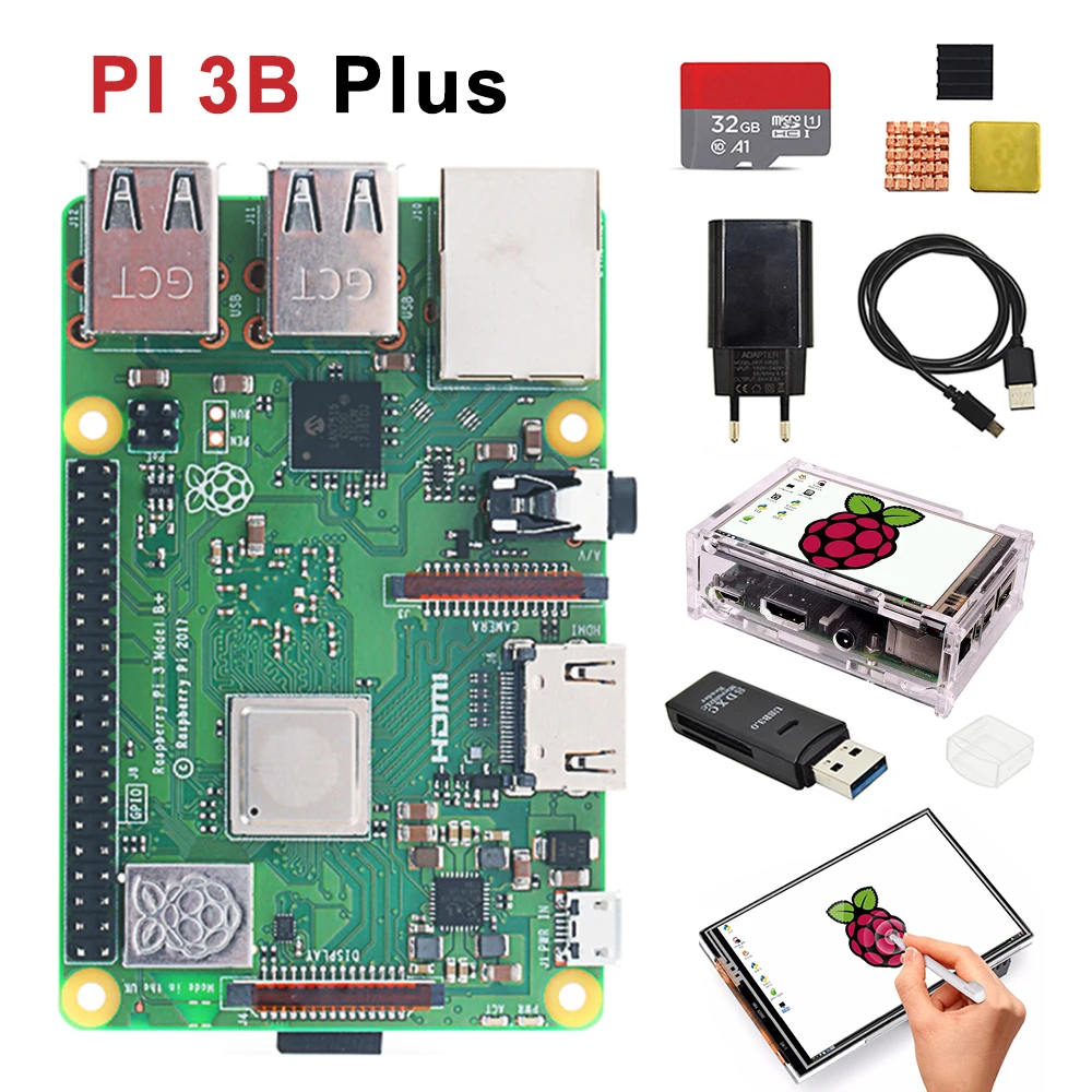 Raspberry pi 3b plus 3.5 inch screen basis kit with Protective Case 32G TF card and multi-card reader and heatsink EU power
